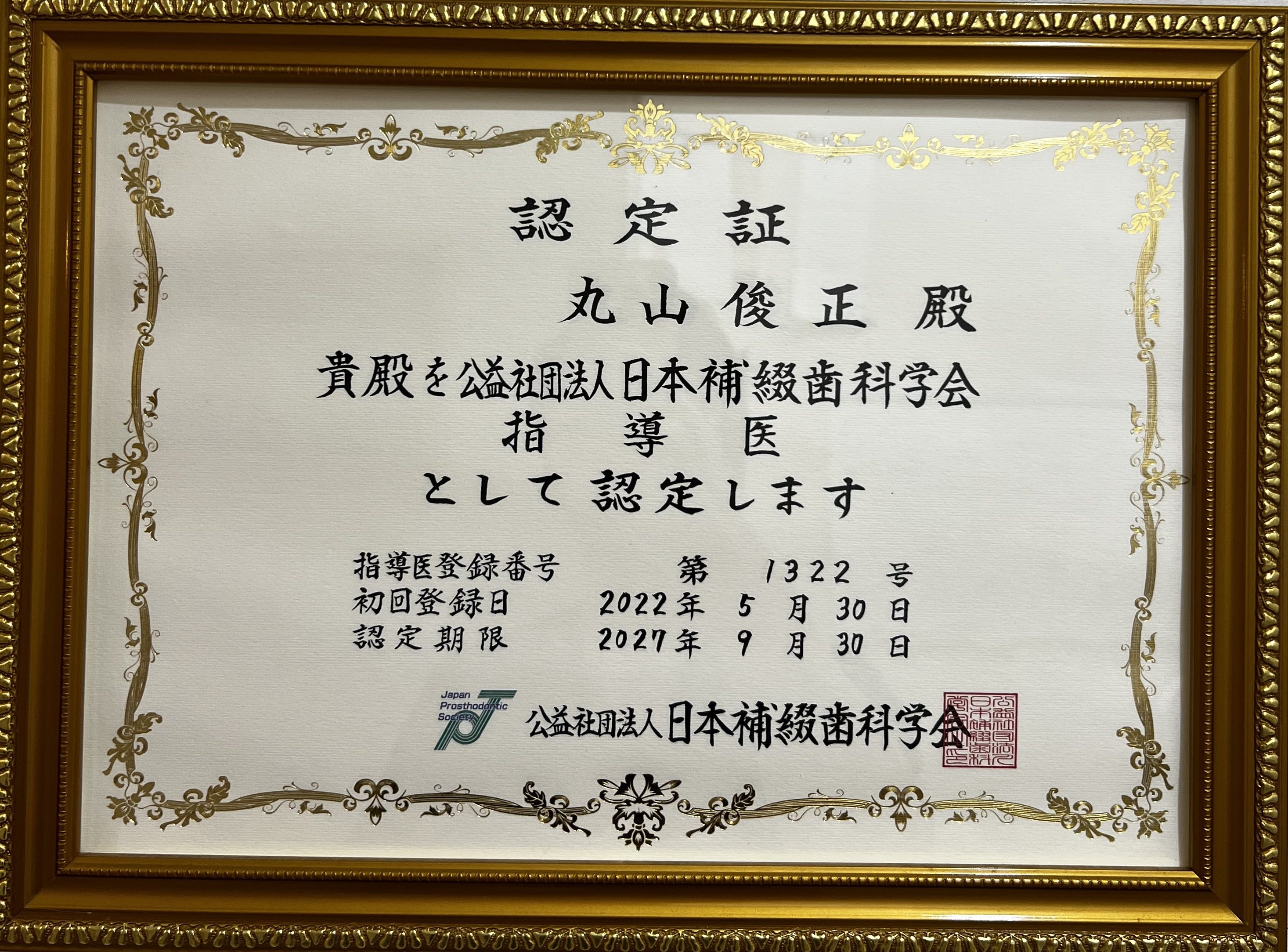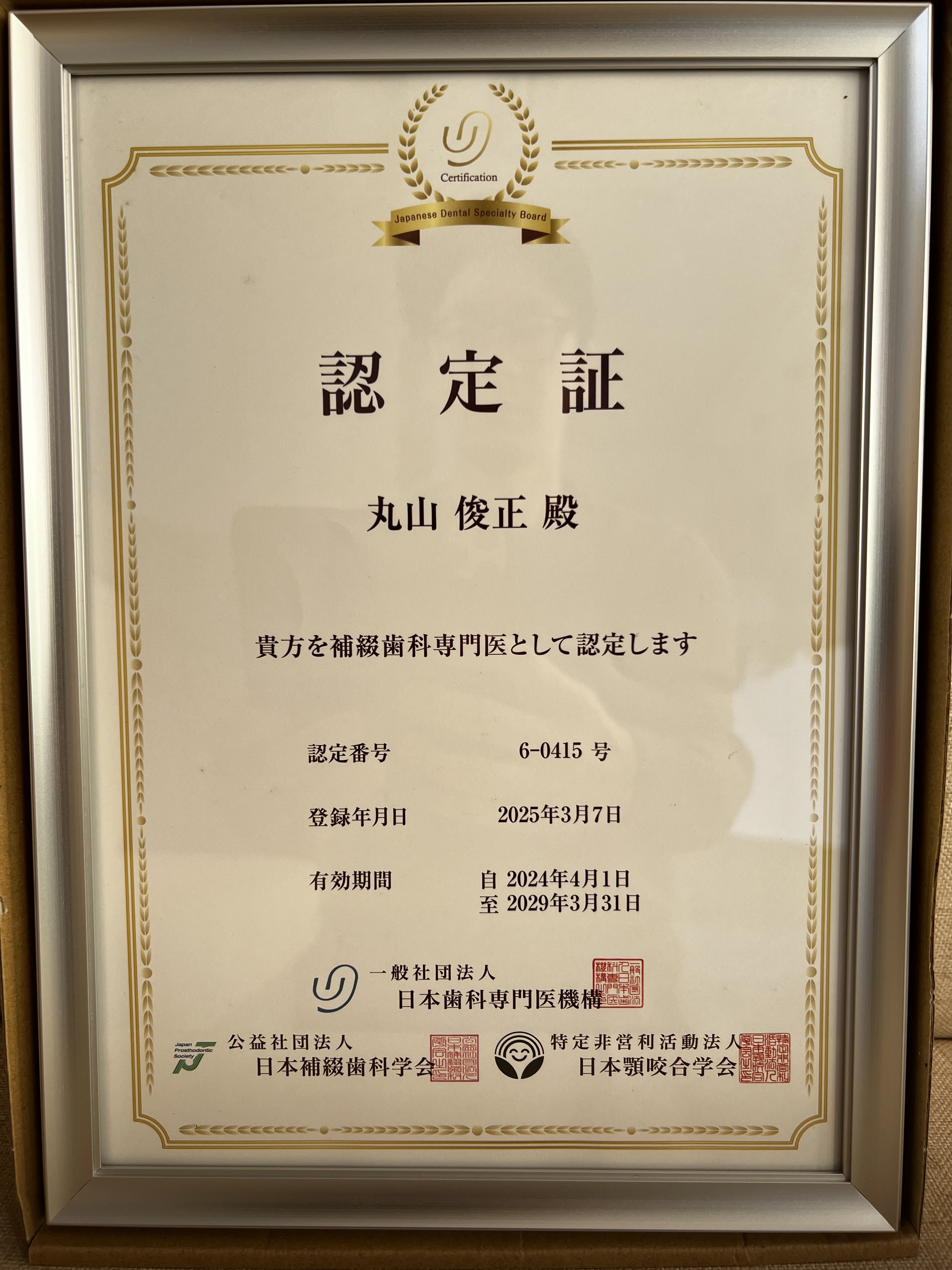 さて、ご報告が遅れましたが、年末ついに待ちに待った日本専門医機構が認定する補綴専門医の認定証が届きました。